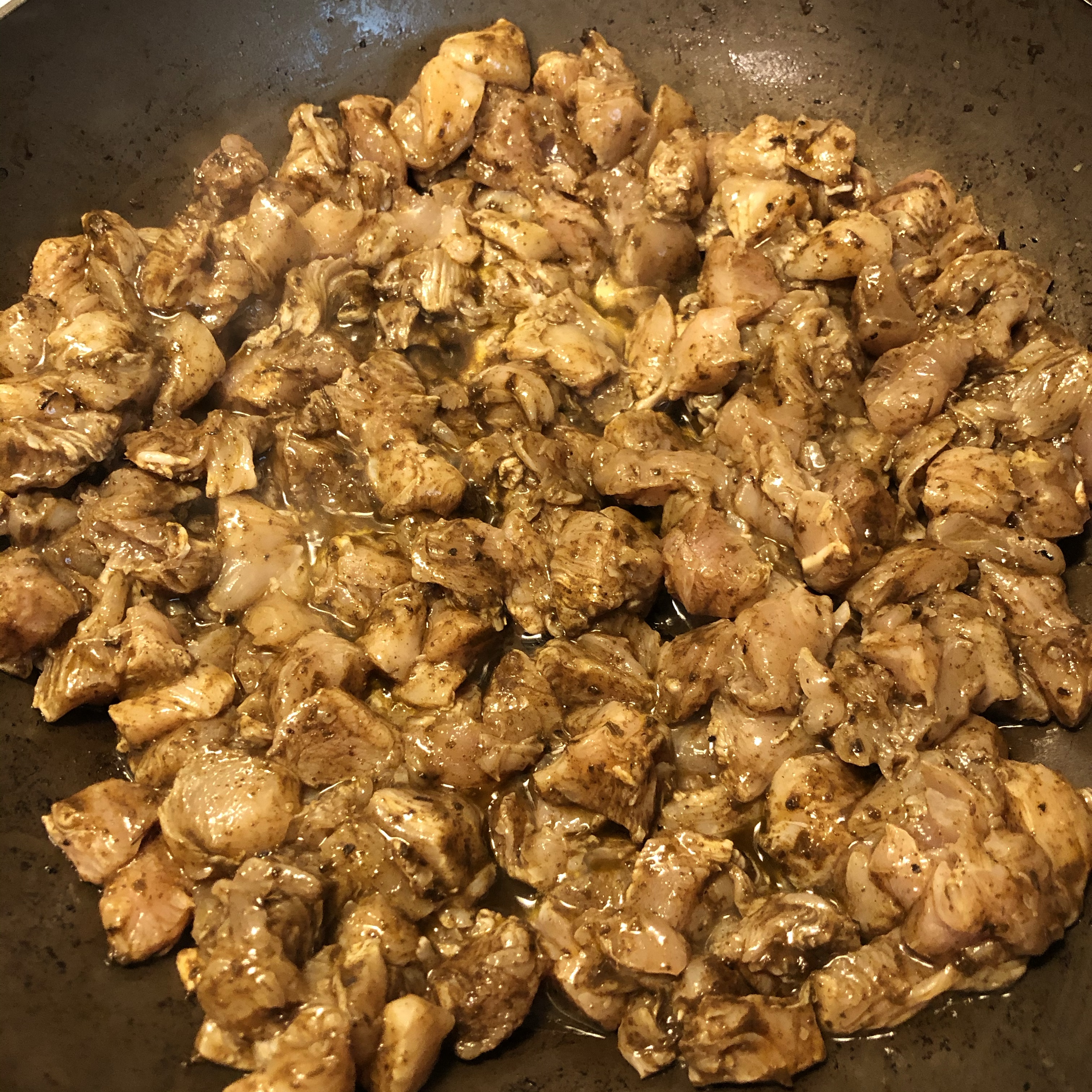 ◦ Add barbacoa (I know it’s not ACTUALLY “adobo” but it has the same elements and I don’t have to use my blender to make it myself) sauce packet to your chicken bowl and mix. Add to pan. Cook until done, I know so specific haha. Add to meal prep container. (Again, in my pic the pan was too crowded. This meant I had to use a paper towel to soak up some of the juices so it kept cooking and not boiling!)